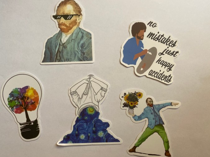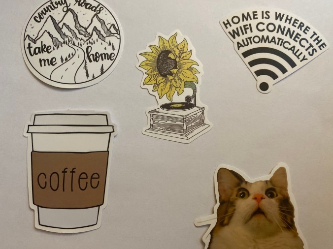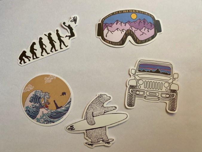 Attached you will find an assortment of images. Choose one of the collections of vinyl stickers and imagine that the stickers are attached to someone’s: computer, water bottle, locker, or another personal belonging. Allow these collection of stickers to tell a story. Imagine what these images say about identity and personality.