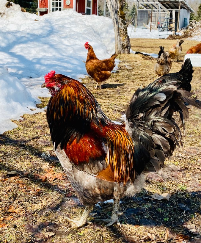 My family tries to grow as much of our own food as possible. That is one of the cornerstones of the lifestyle that my husband and I are trying to embrace. We can and freeze the majority of the vegetables that we eat throughout the year and we raise our own pigs and meat birds (chickens). We also have hens that keep us entertained and provide us with eggs all year long. These sweet girls and our two Roosters, Romeo and Odysseus, are friends not food. We lost Shakespeare, our alpha male rooster last week to old age. He lived a great life on our homestead and we will miss his soulful strut immensely.