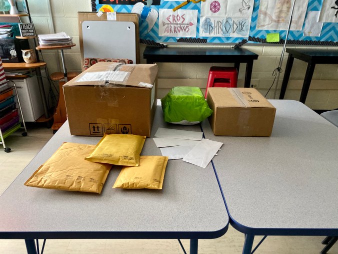 My mailbox offerings left a lump in my throat and were the catalyst for warm tears. Finally the tears. Packages for my students – Outrageous Request Letters granted. We must wait until the “Shelter in Place” order is lifted.