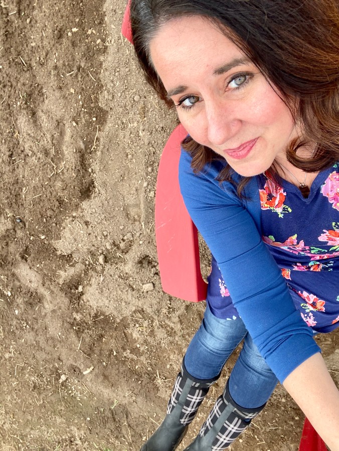 I guess that yesterday’s distance learning translated to Bog boots since it is mud season in Michigan (plus, we have chickens – enough said). 🤣 Yet, it was a photo worthy moment because I even applied makeup and ran a brush through my hair.